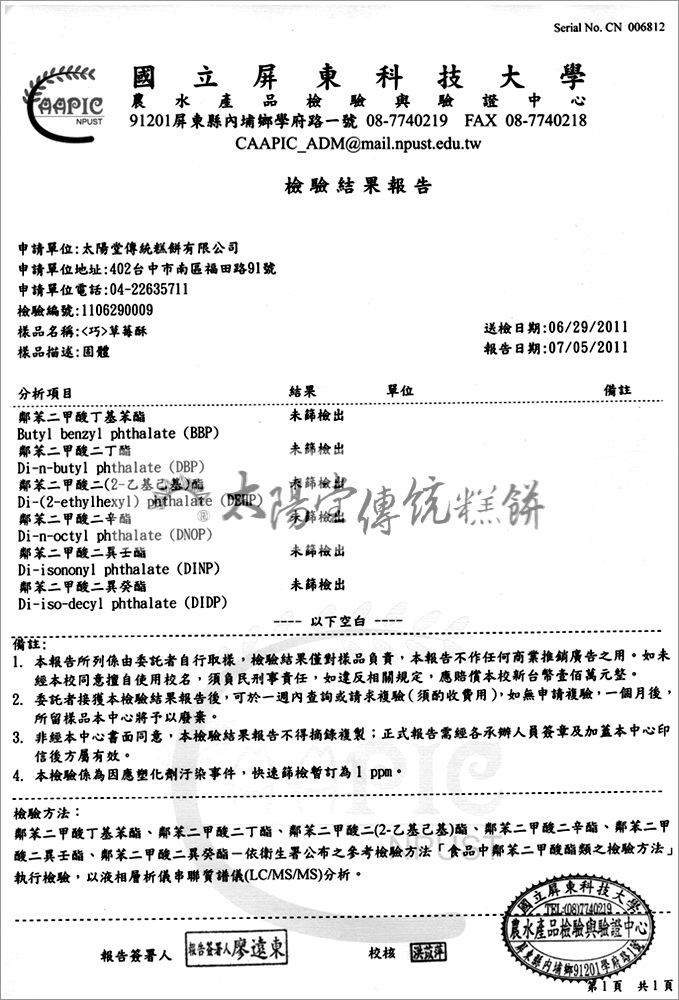 太陽堂傳統糕餅全數通過SGS及屏科大檢驗合格