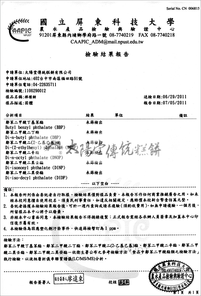 太陽堂傳統糕餅全數通過SGS及屏科大檢驗合格